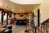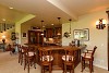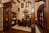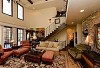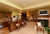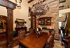 The dramatic entry with wide plank alder flooring opens to the formal dining room located immediately to the right. This beautiful space features stone accents and a two-story high beamed ceiling. The dining room opens through arched mahogany doors to the front courtyard. Beyond is the two-story great room with expansive windows overlooking the back deck and fairway beyond. The great room features an impressive cast stone fireplace with adjacent custom built-ins and rich alder floors. Adjacent is the fully equipped gourmet kitchen with custom cabinetry, stainless appliances including a Viking range with six burner gas cooktop and Sub Zero refrigerator, walk-in pantry, and slab granite and center island that opens to the breakfast area and great room. The kitchen and breakfast room also open onto the back deck with built-in grill.
