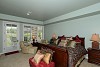 The lower walkout level includes a large media room / game room with large bar with custom wood bar top and cabinets, and three sided fireplace that opens out to the covered patio and golf course views. The bar features an ice maker, beverage cooler and dishwasher. Adjacent is a wine room with custom wine racks. Also on this level is a fourth bedroom suite with steam shower in the private bath. This bedroom accesses the lower level terrace. There is also a powder bath on this level to serve the media/game room.