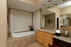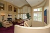 Also on the main level is the luxurious master suite with a “spa” style bath with granite and stone tile finishes including an oversized shower, jetted tub and large walk-in closet. There is a private deck off the master suite, a perfect spot for relaxing. Also on the main level, directly off the entry is the study with wood floors and French doors, a perfect retreat for the work-at-home professional. The main level also has a beautiful powder bath with barrel vaulted ceiling and second, family powder bath and an oversized 3-car garage.