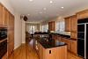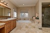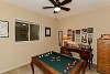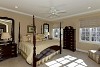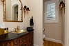 Adjacent to the entry is the formal dining room with travertine floors and coffered ceiling, perfect for family gatherings. The dining room leads into the gourmet kitchen through a convenient butler’s pantry with wine cooler and wine rack. The spacious kitchen features maple glazed cabinetry in a warm, rich color with slab granite counters and appliances including a built-in refrigerator and 5-burner gas cook top. The kitchen features a breakfast bar opening to the family room and a center island as well as a walk-in pantry. The breakfast area is adjacent and opens to one of the main level terraces that is a perfect spot for alfresco dining. Also open to the kitchen is the family room with travertine fireplace which opens through French doors to another terrace. The family room, kitchen and breakfast room all overlook the beautiful gardens of One Polo Creek. Also on the main level is a powder bath with furniture style cabinetry and oversized 3-car garage. There is also a convenient elevator on the main level which takes you up or down to the other levels of the home.