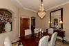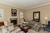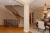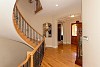 This classic, European style residence brings the outdoors in with volume spaces, expansive windows and the use of stone, granites and rich woods to create a warm and inviting interior. The entry with maple floors and sweeping stairway with iron railings opens to the living room to the left with a wall of French doors overlooking the front courtyard. A gas fireplace and crown molding creates a cozy feeling for this space. This area would also work perfectly as a home office for the work-at-home professional.