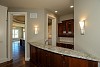 Interior finishes include linen glazed European maple cabinetry and chocolate glazed cherry accents, tile and wood floors, custom wall tile details, custom paint, custom, clear alder wood built-ins, iron railing and upgraded carpet.
