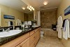 Exquisite finishes in this home include wood floors, maple cabinetry, granite counters and travertine bath finishes.