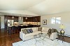 The large covered front porch leads to the entry and opens into the spacious living room with large window overlooking the front yard. Views through the living area include the dining area and new kitchen featuring all new cabinetry, slab counters and stainless appliances. The kitchen opens to the vaulted family room with gas fireplace and parting, sliding doors which open out to the deck and back yard. There is also a convenient study located adjacent to the dining room.