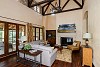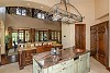 Great attention to detail has gone into creating this spectacular Tuscan style residence. The turreted entry with sweeping stairway leads to the amazing great room beyond. Hand trowled walls, custom faux finishes and walnut floors set the tone for this one-of-a-kind residence. The two-story great room features huge, hand hewn beams, walnut floors, a warm and welcoming fireplace and multiple sets of French doors opening out to the main level deck with views of the golf course beyond. Adjacent is the formal dining room, perfect for family gatherings and again with French doors leading to the deck.