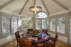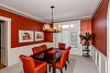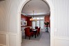 This ranch style residence with finished walkout level features a gracious entry opening to visually dramatic space. One of the first things that you notice about this home is the custom millwork in nearly every room. Straight ahead is the living room with expansive windows overlooking the private site. The living room features a fireplace with custom surround and plantation shutters. The color scheme creates a warm and welcoming feeling. Off of the entry is the formal dining room with beautiful wainscot and crown molding, perfect for family gatherings.