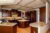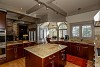 The new kitchen is adjacent to the dining room and opens to the cozy family room and the bayed breakfast room. The kitchen features rich wood cabinetry, slab granite counters and top-of-the-line appliances. The adjoining breakfast area opens to the main level deck that stretches across the back of the house offering commanding views of the wooded site and overlooks the family room with fireplace, under counter refrigerator and wine cooler, and expansive windows. This is a great casual living space and is ideal for entertaining guests. Also on the main level is the luxurious master suite with a “spa” style bath with jetted tub, steam shower and large walk-in closet. The master bedroom also features a fireplace, coffered ceiling and has access to the main level deck.