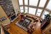 The second floor hosts four spacious bedrooms, all with generous walk-in closets. One of the secondary bedrooms has it’s own private bath and the other two secondary bedrooms share a jack-n-jill bath. There is also a loft/overlook on this level. The master suite includes a large bedroom area with sitting room, large walk-in closet and luxurious bath with travertine finishes.