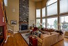 The kitchen is adjacent to the breakfast room which accesses the main level deck which is partially covered and overlooks the amazing yard with mature pines and lush landscaping and flagstone terrace with fire pit. This is a perfect area for outdoor relaxing and entertaining. The kitchen and breakfast area overlook the family room with dramatic two-story windows, wood floors and fireplace. This level of the home offers a great flow of space for daily family living or gracious entertaining with friends and family. Also on the main level is a powder bath, mud room with built-ins, laundry room with built-ins and three-car garage.