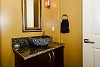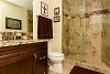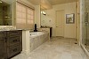 Tucked discreetly off the entry is the study with French doors. This room is warm and welcoming and features custom wainscoting. Also on the main level is the master suite with fireplace and luxurious, “spa” style bath, and dual walk-in closets. There is also a convenient powder bath on the main floor with a vessel sink as well as a laundry room with cabinets sink and storage.