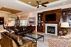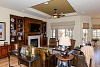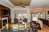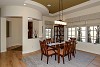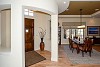 Walk through the front entry courtyard into the rotunda shaped entry which overlooks the great room/dining room. The great room features an impressive custom millwork fireplace surround with adjoining built-ins, and large windows overlooking the back patio and waterway beyond. The dining room with coffered ceiling is perfect for family gatherings. Adjacent is the kitchen with custom cabinetry, stainless appliances including a Wolff range with six burner gas cooktop and Sub Zero refrigerator, slab granite, and center island that opens to the breakfast area and great room. The kitchen and breakfast room overlook the back patio.