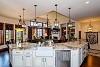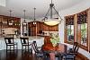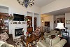 This Villa II floor plan features a spacious entry with wide plank, hand scraped wood floors, which leads to the spacious study immediately to the left. This room is bright and sunny and has large windows overlooking the front courtyard and side yard, and is the perfect space for the work at home professional or a relaxing library space. Beyond the study is the formal dining room, perfect for family gatherings. Straight ahead is the two-story great room with custom fireplace surround and expansive windows overlooking the back patio and yard and waterway beyond. Adjacent is the kitchen/with stainless appliances including Sub Zero, Bosch and Wolf, expanded center island that opens to the great room and large casual dining area, again overlooking the back patio.