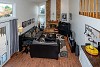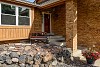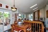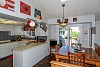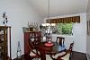 The covered front porch leads to the entry and opens into the vaulted living room and dining room with wide plank, hand scraped wood floors. This area is light and bright with windows front and back. The adjacent kitchen has been updated with a glass tile back splash and some newer stainless appliances including a French door refrigerator.