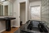 Updating on this home includes a newer roof, newer windows, newer kitchen with newer cabinetry, slab granite counters and newer stainless appliances, updated baths, refinished wood floors, new carpet, new interior paint, new fixtures and lighting.