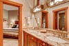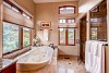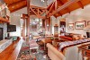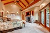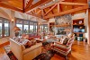 The master suite is at the opposite end of the main floor and again features incredible, timber posts and beams and includes a vaulted ceiling. This spacious room also features a sitting area overlooking the site and mountains beyond, a third fireplace with built-ins, large walk-in closet with custom built-ins, and a luxurious master bath with dual vanities, jetted tub and shower with rain fall shower head plus a hand-held shower head and standard shower head. The master suite is a perfect retreat at the end of the day. There is also roughed-in plumbing in the master closet for a second washer and dryer. Also on the main level is a spacious laundry room with counter space and ample storage as well as a mud room area and full, guest bath. The four car garage is oversized and is heated and features a large wall of built-ins.