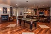 The lower walkout level includes a large family/media room with television area, billiard area, and walk behind wet bar. The wood work and trim detailing in this area are truly superior. Don’t miss the wine cellar with custom built-ins and millwork. Also on this level are three bedrooms with adjoining baths. One of the bedrooms is set up as a second master suite. The lower level accesses the lower terrace featuring mountain views. There is also an ample storage area.