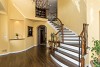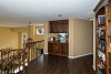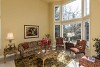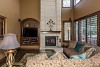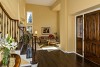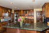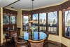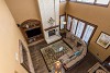 This “Colorado” style residence brings the outdoors in with volume spaces, expansive windows and the use of rich woods to create a warm and inviting interior. The dramatic entry with sweeping stairway to the second floor opens to the marble floored, two-story living room with a wall of glass overlooking the front yard. Adjacent to the living room is the formal dining room, perfect for family gatherings and holiday dinners. The dining room leads into the gourmet kitchen with center island, breakfast room and adjoining two-story family room with fireplace. The kitchen features top-of-the-line stainless appliances rich glazed wood cabinetry and slab granite counters and custom hand etched copper backsplash. The bayed breakfast room overlooks the main level deck, lushly landscaped back yard and open space beyond.