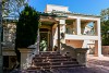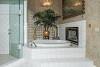 • Luxurious master suite with two-sided fireplace between the bedroom and bath. Spa style bath with jetted tub and steam shower. Walk-in closet with custom built-ins. Private terrace overlooking the wooded site.