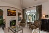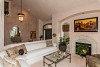 • Great room with vaulted ceiling, Cantera stone fireplace and built-in entertainment center overlooking the lush site with mountain vistas beyond.