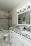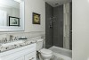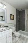 • New kitchen with new cabinets, slab granite counters and stainless appliances.