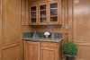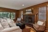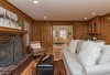• Warm and inviting family room with fireplace, raised wood paneling, inlaid wood floors and wet bar.