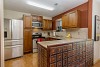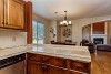* Kitchen with rich wood cabinetry, granite counters and stainless appliances.