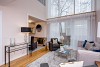 • Two-story living/dining room with wood floors, fireplace and wall of glass making this area light and bright.