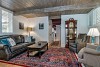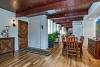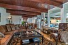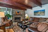 • Warm and cozy family room with wood beamed ceiling, custom built-ins and stone fireplace.
