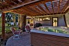 • Luxurious master suite with new bath with double vanity and walk-in shower and generous walk-in closet with custom closet built-ins. The master suite accesses a terrace with hot tub under a timber pergola.