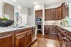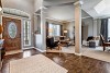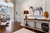 Custom design touches throughout this home include extensive wood floors on the main level, designer selected carpet, custom millwork, stone accents, solid surface counters, new cabinetry in kitchens and baths, designer selected lighting fixtures, new hardware, custom wall and window coverings.