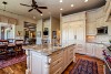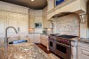 Chef’s dream kitchen with custom glazed cabinetry, Wolf and Sub-Zero appliances and slab granite counters.