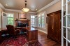 Main level study with fireplace and crown molding.