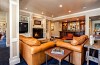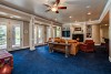 Lower walkout level with media/billiard room with fireplace and wet bar overlooking the terrace and fairway views.