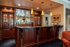 Main level library with magnificent raised panel millwork, fireplace and wet bar overlooking the fairways.