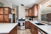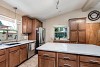 - Updated eat-in kitchen with maple cabinetry, quartz counters, backsplash, stainless appliances and large center island.