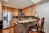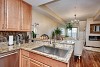 Updated kitchen with new mosaic back splash, stainless farm sink and new Kitchen Aid appliances including an induction cooktop.