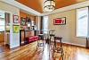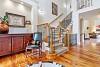Flexible space and floorplan flow are creatively integrated with the study and dining room layouts. Gorgeous crown moulding, another fireplace, and story-and-a-half windows, too.