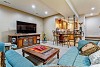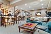 Awesome finished basement! Stunning wet bar area has it all: gorgeous cabinetry and granite, undercounter fridge, wine/beverage fridge, and ice maker.