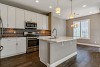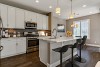 * Chef's kitchen with center island, quartz counters with designer back splash and stainless appliances.