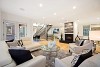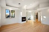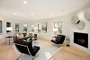 Sunny south facing living room with fireplace overlooks the newly enhanced, landscaped back yard.
