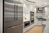 Updated kitchen with white cabinets, new quartz counters, new back splash, new sink and faucet and top-of-the-line, stainless appliances including a new wine refrigerator. A built-in banquette makes a perfect breakfast area and there is also a walk-in pantry.