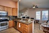 Kitchen features stainless appliances, granite counters, breakfast nook and deck access.