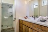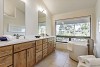 The main floor master bedroom features expansive windows and access to the west facing deck, and includes a “spa” style bath with deep soaking tub, steam shower and double vanities as well as dual walk-in closets with custom built-ins.