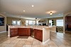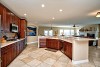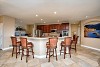 Adjacent to the great room is the chef’s dream kitchen with center island, solid surface counters and stainless appliances.