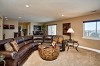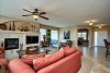 The heart of the house is the great room with gas fireplace and views to the main level deck and fairways beyond.