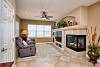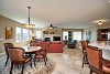 Adjacent to the kitchen is the hearth room, a cozy sitting area with gas fireplace, perfect for watching television and relaxing.