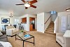 Generous kitchen with plenty of counter space, eating bar open to the living and dining area plus stainless appliances and adjacent pantry.