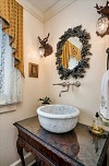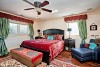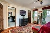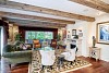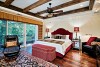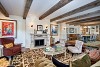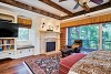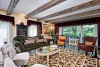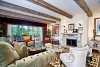 The family room opens from the kitchen and breakfast area to create a great living/entertaining space. Enjoy the crackling fire on a cool day in this sun filled space with vaulted and beamed ceilings and south facing French doors opening to a sunny, private terrace.