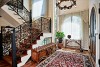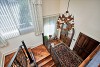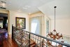 The dramatic entry is filled with sunlight from the south facing windows. You will immediately notice the wide plank wood floors that flow into the dining room and living room and the exquisitely detailed custom stair railing and lighting.