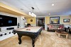 The lower level includes a media/billiard room with surround sound speakers plus a third bedroom or study with built-in murphy bed, built-in credenza and adjacent bath.